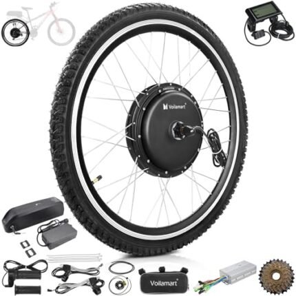 Voilamart 26″ Waterproof Electric Bicycle Hub Motor Wheel Conversion Kit 48V 1200W with LCD Display Meter IP65