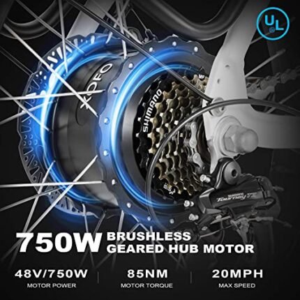 Electric Bike 20″ 750W Peak Power Folding Fat Tire Electric Bike with 48V 13Ah Removable Battery 20MPH Adult Ebike, 7-Speed Electric Bicycle, 50miles Range Commute E-Bike, LCD Display