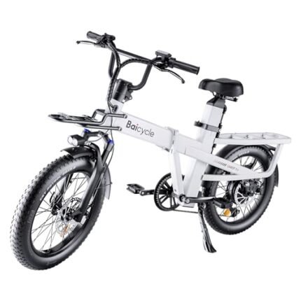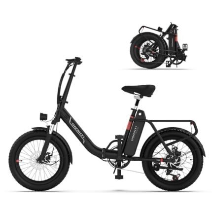 Electric Bike, 20″ Fat Tire Step-Thru Electric Bicycle, 900W Peak Motor 45 Miles 20MPH Top Speed, Dual Suspension & 7-Speed Folding Ebike for Adults with Rear Rack