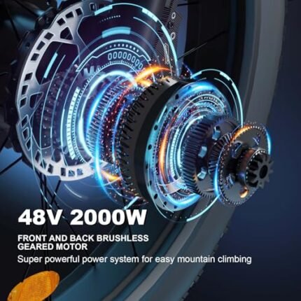 Electric Bike,Dual Motor AWD 2000W Removable 48V/22.4AH Battery E-Bike 26’*4.0′ Fat Tire Electric Bicycle with 7 Speed