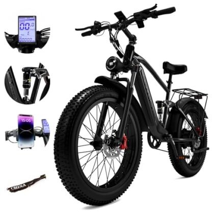 Electric Bike with 35MPH, Dual 1000W Motor,48V 22.4AH Electric Bicycle Full Suspension,26″ Fat Tire Electric Bike Hydraulic Brakes
