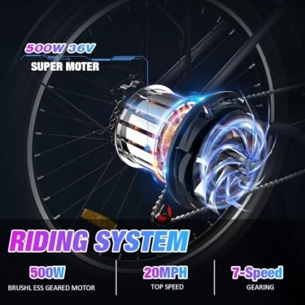 RCB Electric Bike, 500W Electric Bike for Adults, 26″ Ebike Adult Electric Bicycles, 55Miles 20MPH Commuting Electric Mountain Bike, 36V 472Wh Battery, 7-Speed, 26″ Tires and Front Fork Suspension