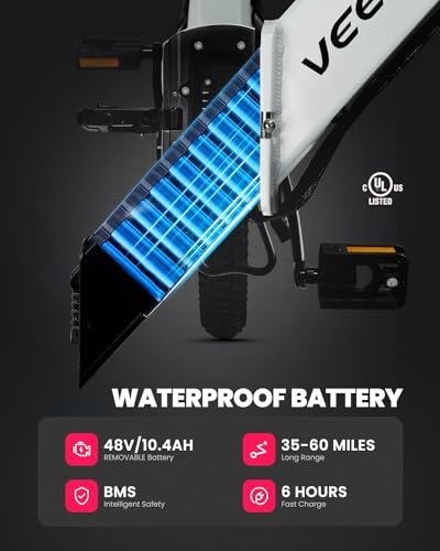 VEEFA F1 Electric Bike for Adults, 500W Motor E Bike with 10.4Ah Removable Battery, Folding Ebike 20MPH Max Speed& 60+ Miles Range, 5 Pedal-Assist Levels, UL 2849 Certified 7-Speed