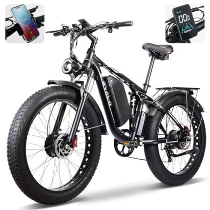 E·Bycco Dual 1000W Motors 2000W Electric Bike for Adults, 37MPH 52V 23Ah Battery Electric Bicycle, Full Suspension 26″*4.0 Fat Tire Hydraulic Disc Brake Ebike, Beach Off-Road Mountain E-Bike for Men