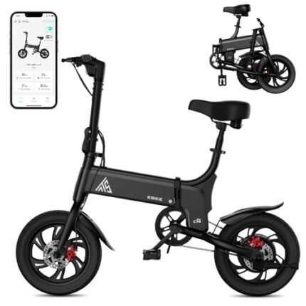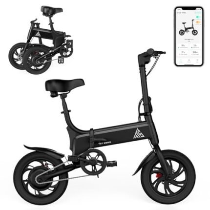 TST Folding Electric Bike, Electric Bicycle 18MPH, 500W Peak Motor, Max 18 Miles Range, 14″ Pneumatic Tires, Ebike with Smart LED Screen, App Control, 3 Speed Gear, E Bike for Adults and Teens