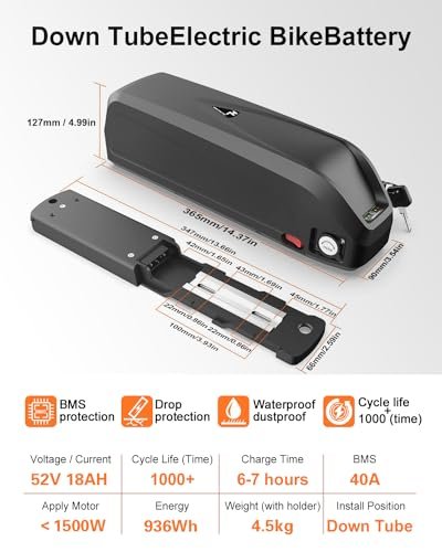 UZI E-Bike 52V 18Ah Li-ion Battery Pack for 200W 250W 300W 350W 500W 750W 950W 1100W 1500W Adult Electric Bicycles Motors(W/Charger&USB Port &BMS&Voltage Equalization Chip)