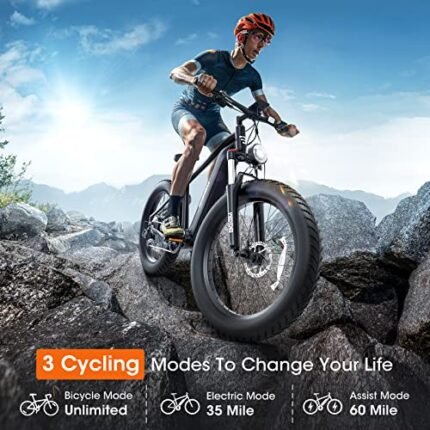 UDON BEEMONE Electric Bike for Adults One-Step, 1000W Motor Electric Bicycle with 26″ x 4.0 Fat Tire, 30-80Miles 28MPH E-Bikes with 48V/20Ah Removable Battery (Men, Black-3)