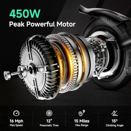 TST Folding Electric Bike, Electric Bicycle 450W Peak Motor, Ebike 16MPH,Up to 15 Miles, 12″ Pneumatic Tires for Better Driving Experience, Adjustable Seat and Dual Fenders