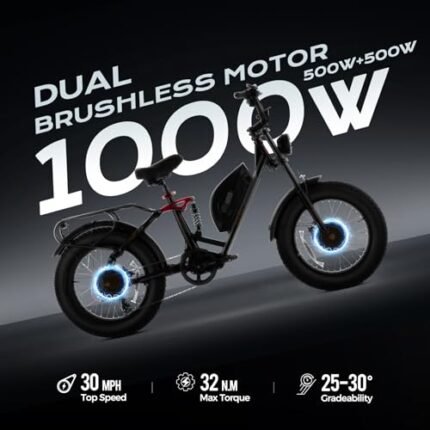 eAhora Luna&Terra Electric Bike for Adults 1500W 2000W Peak 20″×4.0″ Fat Tire Electric Bicycle Max Speed 33mph 7 Speed 15A/20A Ebike Full Suspension Dual Motor