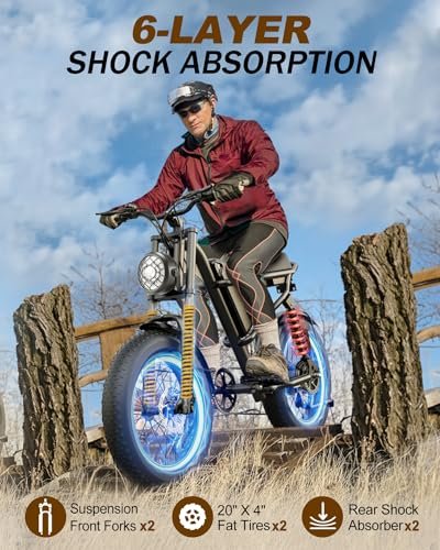 1500W Full Suspension Moped Style Ebike, 20″ Fat Tire Electric Bike Up to 28MPH & 75 Miles, 15.6AH/31.2AH Removable Battery, All-Terrain Offroad E Bike for Mountains, Snow, Sand, Road