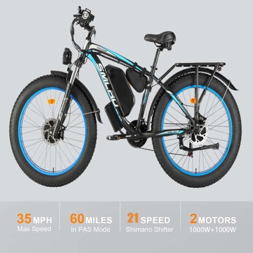 2000W Dual Motor Electric Bike for Adults, 21-Speed AWD Ebike, 35MPH 48V 22.4Ah Fat Tire Mountain E Bikes for Hunting, 26” Hydraulic Disc Brake Adult Electric Bicycles for Men & Women