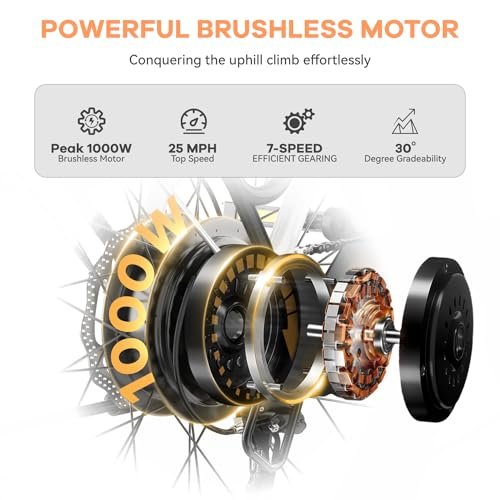 1000W Peak, 25+ MPH, 70+ Mile E-Bike — 5 Riding Modes, 7-Speed Transmission