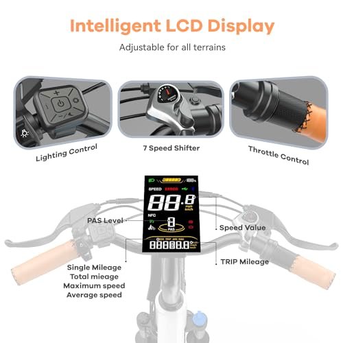- Display. : – HD color LCD shows real-time speed, battery level, PAS level, mileage, and more