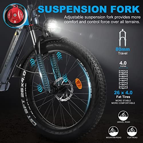 Be the first to review “26″ Fat Tire Electric Bike 48V 17.5Ah Battery, 750W Mountain Electric Bicycle City Urban Commuter E Bike for Adults Men Women Long Range 30MPH 7-Speed Gears Color Dispaly with 2 Seat” Cancel reply