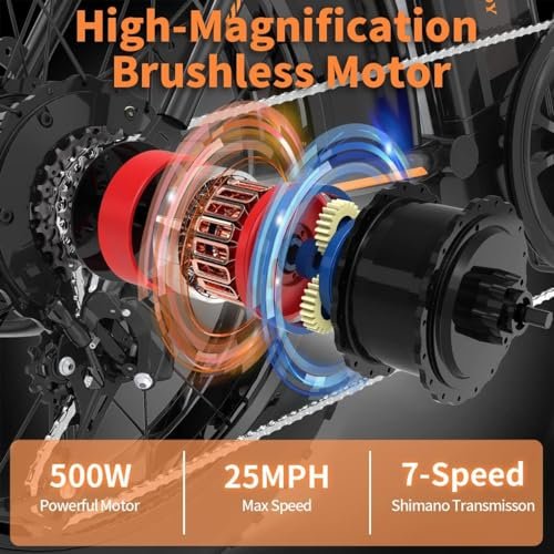 aostirmotor 500W Folding Electric Bike for Adults 20″×4″ Fat Tire Electric Bike 36V 13AH Removable Lithium Battery Adult Electric Bicycles, 25MPH E Bike for Adults, Shimano 7 Speed Ebike