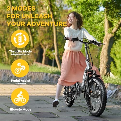 • Excellent Riding Performance. : – Electric mountain bike equips with professional 7 speed shift gear and 3 riding modes, more precise and more sensitive. Easy operation LCD intelligent display, which you can operate 5 levels pedal assist and shows the speed, mileage, power of the ride. 20″ fat tire electric bike for all terrains, wear-resistant, excellent grip and slip resistance.Also, the switch button of LCD comes with USB charging port which is for charging phone.