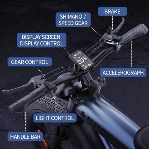 | Included Components | 48V17.5Ah battery, 7-speed derailleur, dual shock absorption system, dual hydraulic disc brakes, 20″ x 4.0″ fat tires, rear rack, front headlight48V17.5Ah battery, 7-speed derailleur, dual shock absorption system, dual hy… See more |
