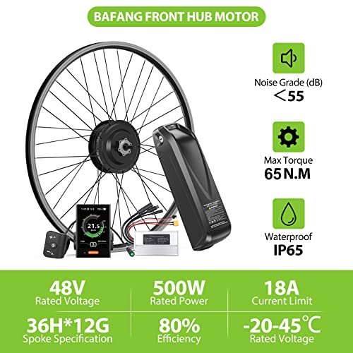 BAFANG 48V 500W Front Hub Motor : Electric Bike Conversion Kit with Battery (Optional) for 20 26 27.5 700C Inch Front Wheel eBike Drive System with LCD Display & PAS
