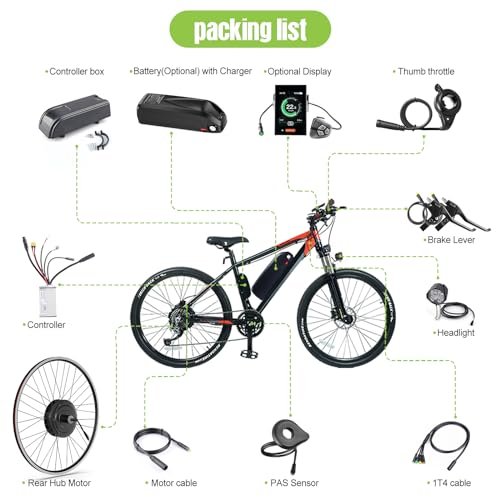 | Included Components | rear wheel & motor, controller, brake level or brake sensor , thumb throttle, controller case,LCD display (optional),connect cable,PAS,LED light as a free gift, optional ebike battery and chargerrear wheel & motor, controller, brake level or brake sensor , thumb thrott… See more |