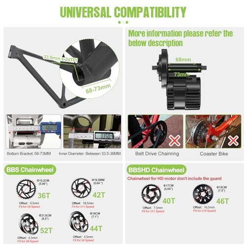 | Included Components | Connect cables,tools,zips,nuts,screws, Optional Ebike Battery& Display & Chainring, BAFANG mid drive kit for BB68-73mm, Brake levers ,Cranks, Headlight,speed sensorConnect cables,tools,zips,nuts,screws, Optional Ebike Battery& Di… See more |