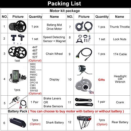 Packing List BAFANG Mid Drive Motor ( with Integrated Controller )