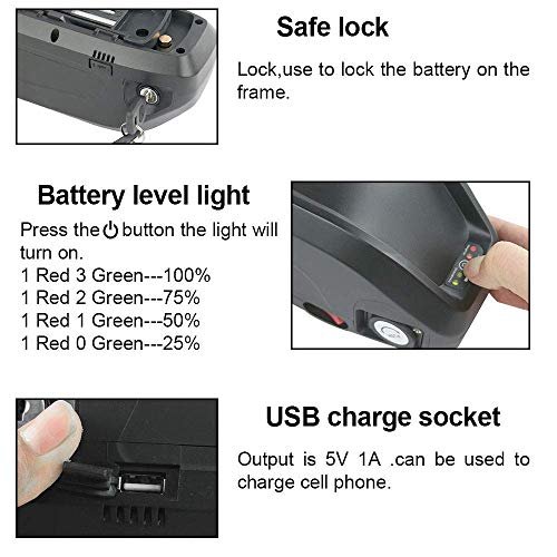 Co-Well (US Warehouse) E-Bike Battery 36V 48V 52V, 20AH 17.5AH 15AH 13AH Electric Bike Lithium ion Battery with Charger, BMS, USB Port for 1500W 1000W 750W 500W E-Bike Motor