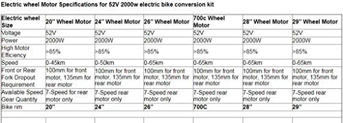 Color Display, Electric Bike Conversion Kit 52V 2000W Rear Motor Wheel Bicycle Kit with Sine Wave Controller, 7 Speed flywheel (700C)