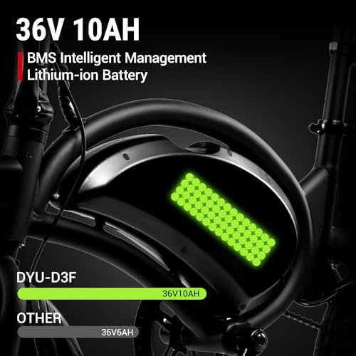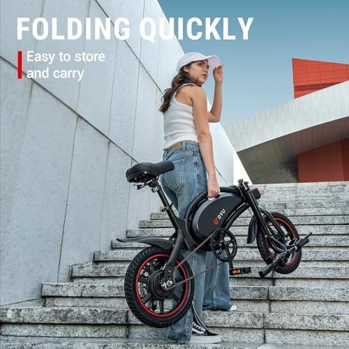 DYU Electric Bike for Adults Teens, D3F 14 in Folding Electric Bicycle,Commuter City E-Bike with 250W Motor and 36V 10AH Lithium-Ion Battery,40-45 Miles Travel Range