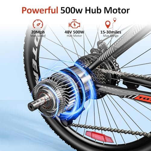 E-TOTEM 27.5″ Electric Bicycle for Adults with 21-Speed Gear and Mechanical Disc Brakes, E-Bike with 48V 10.4Ah Removable Battery Up to 40 Miles of Range, Electric Bike with Suspension Fork