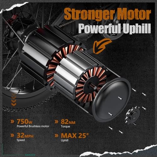 [750W Mountain E bike This mountain ebike equipment with a 750W high-speed brushless hub motor, torque up to 82NM, which provides plenty of power to tackle steep hills up to 30°, which helps mountain ride easily to against the hills, gravel trails, dirt paths, and bumpy roads.