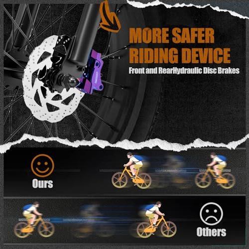 [Electric Bikes with Hydraulic Disk Brakes The dual hydraulic disc brakes system ensures the e bike with quick and smooth stops even when riding at high speeds, shortening the braking distance, even on wet roads, keeping you cycling more safely.