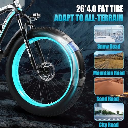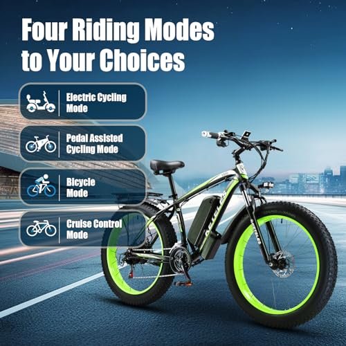 Electric Bike for Adult, 26″ x 4.0 Fat Tire Ebike, 1000W/2000W Peak Electric Bicycle, 48V 13/17.5/23AH Waterproof Battery, Front Suspension Ebike, 27MPH-46MPH, Adjustable Seat, UL and GCC Certified