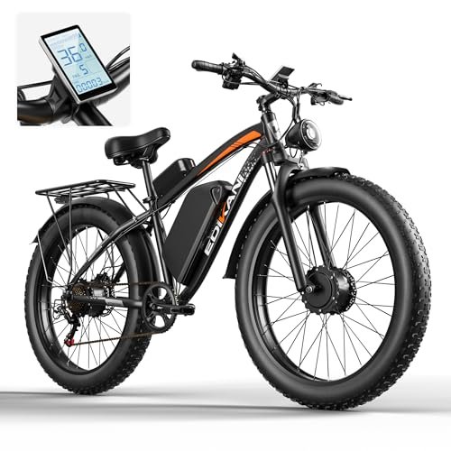 • 3000W Peak Dual Motor. : – Featuring 2 motors with 3000W total peak output, the dual motor electric bike delivers double power to reach top speeds of 36 MPH and climb 40° uphill. Providing excellent performance for commuting, off-road adventures, leisurely ride, mountain biking, and long-distance travel.