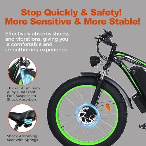 This adult electric bike.It has a high-power 2000W dual motor electric bike with a maximum speed of 55KM.It can switch between single-motor and dual-motor riding.Strong climbing power. The maximum slope of the electric bike can reach 25.With the dual motor 26″*4.0 fat tire ebike,you can conquer the most rugged terrain smoothly and easily,and dominate any all-terrain electric bicycle in mountain,gravel road,highway,beach,snow and other road conditions.Our electric bicycles is the best ebike for cross-country,mountain,outdoor and long-distance travel.