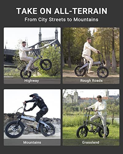 [Convenient & Safe Commuter Bike – New upgrade Cruise Control function and half twist throttle are easy to control the riding speed. Full fenders and IP65 rating so you can ride in any weather condition. Besides, it comes with a rear rack and phone mount, which is convenient for carrying packages. The foldable design makes you to bring e bike for adults to the office or get into the car easily.