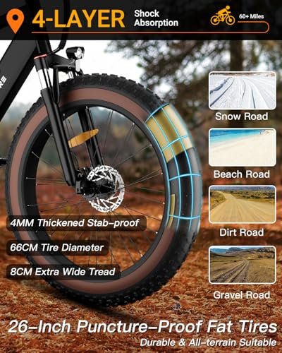 Electric Bike for Adults 1200W Peak Motor, 48V 720Wh Removable Battery, 65 Miles 28MPH Ebike Mountain, 26″ Fat Tire Adult Electric Bicycles with Hydraulic Suspension,7 Speed Gears UL Commuter E Bike