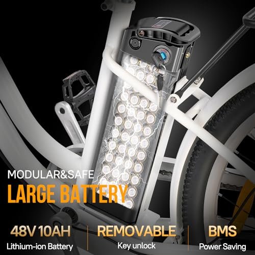 Electric Bike for Adults, 26″ Ebikes, Peak 750W Electric Cruiser Bike with 48V 14.5Ah/11.6Ah Removable Battery, 25Mph Electric Bicycle w/ 7-Speed & Front Suspension(Fits for 5’2″-6’5″)