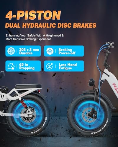 • Stable & Comfortable. : – . : – This fat tire electric bike features a lockable hydraulic suspension and dual rear shockers, coupled with the 20 inch wide(4.0 in) and durable wheels and plush saddle, which can provide a smooth riding experience even on rough terrain and make riding more comfortable and enjoyable.