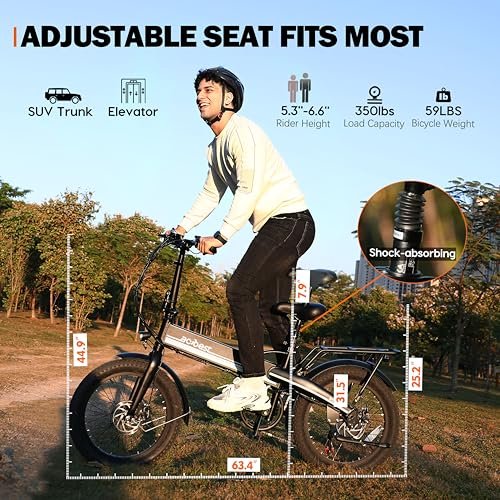 • Adjustable and Durable Electric Bicycle – Comfortable shock-absorbing seat, adjustable height fits (5’2″-6’5″), and a sturdy aluminum alloy frame supporting up to 350 pounds.