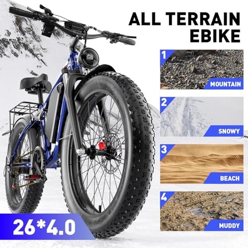 • All Terrain Suitable Fat Tire & Intelligent LCD Display – Our 26*4” fat tire electric bike can conquer all terrains and any weather condition with confidence, performing perfectly on highway, mountain road, sand, snow and any other terrains. Intelligent LCD display allows you to read real-speed, battery status, PAS levels and mileage at a glance.