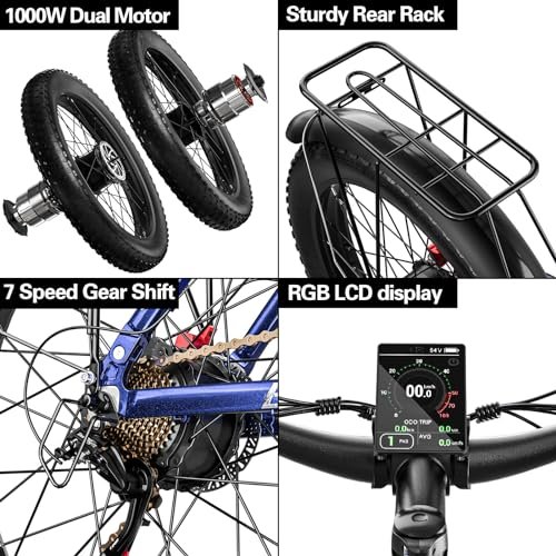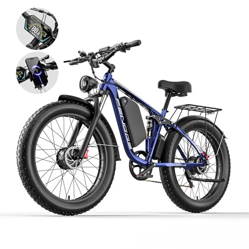 Electric Bike for Adults,1000/2000W Motor 35MPH,52V 20AH Battery,26″ Fat Tire Ebike,Max 90 Miles E Bike for Men, Full Suspension,Hydraulic Brake 7-Speed Gears for Beach Mountain Electric Bike