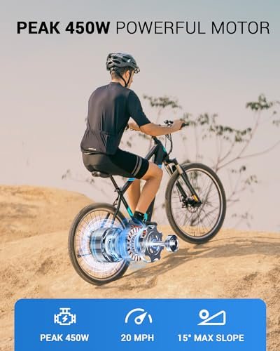 • Peak 450W Motor. : – The electric bike for adults is equipped with a 350W(Peak 450W) high-speed brushless motor, which provides strong climbing ability and smooth acceleration. The torque can reach up to 40NM, allowing for faster acceleration, with a maximum speed of up to 20mph.
