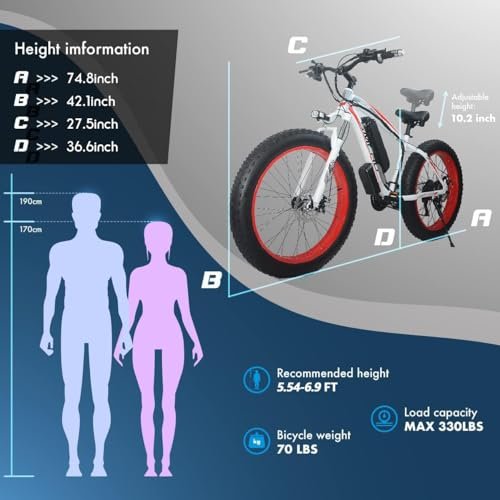 RECOMMENDED RIDER HEIGHT&&ONE-YEAR Service. : – The recommended rider’s height for our E-bike is about 5’58″~6’9″. Maximum capacity. : – 330 lb, we will provide high-quality after-sales service and one-year Service for each electric bicycle, and buy this product with confidence. If you have any questions, please send email to us, we are always here to serve you within 24 hours.