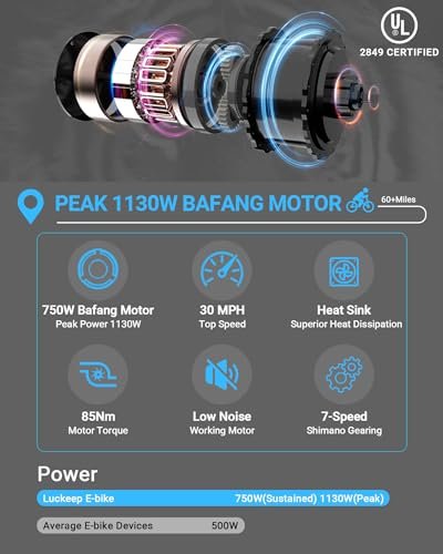 Motor. : – 1130W (Peak) 750W (Sustained), 48V BAFANG Brushless Rear Hub Motor