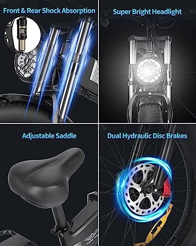 Folding Electric Bike for Adults, 1500W/2000W 30/37MPH, 50 Miles/70 Miles, 48V 15Ah/20Ah Battery, 20″/26″ Fat Tire City Commuter EBike for Men Women, Foldable Electric Bicycle