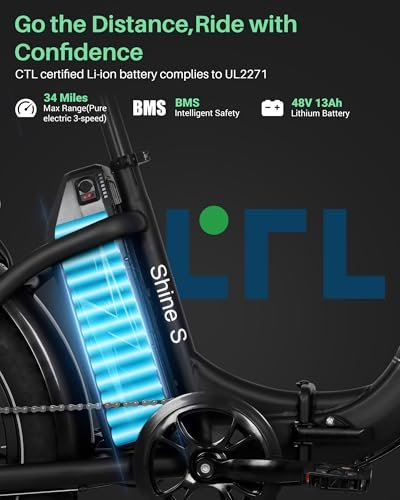 Powerful Riding Performance. : – . : – Likebike Shine S foldable Electric Bike for Adults equipped with 500 W(Peak 720 W)Powerful Brushless Motor and 20 tires, 624 Wh removable battery, top speed 19.5 MPH making riding easier,effortlessly conquer off-the road to school,work or outdooor, enjoy a smooth ride on various surfaces. Have Shine S, more enjoyable.