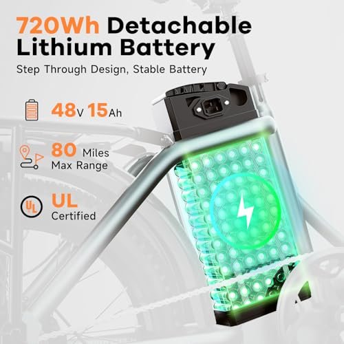 • 48V 15Ah Long Range Removable Battery. : – Not only the excellent motor but also an upgraded battery equipped. The 48V 15Ah lithium-ion battery covers a range of 40-80 miles per full charge. The removable battery design makes charging more convenient. Dustproof and dampproof, guarantee the safety and life of the battery. Effortlessly cruise, exercise, or commute seamlessly with this long range e-bike. If you like thrills and challenges, you can also ride this mountain Ebike for a non-stop adventure.