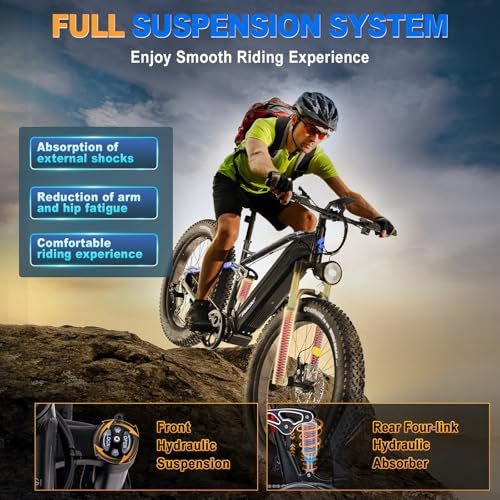 • Full Suspension System. : – FREESKY Eurostar Ultra full suspension electric mountain bike is equipped with a lockable hydraulic front suspension fork and rear shock absorber that allows you to explore the cityscape while minimizing bumps in the ride, provide you a very comfortable riding experience even on rough roads