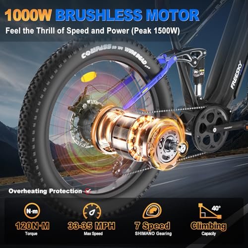 • Peak 1500W Motor & 35 MPH Top Speed. : – FREESKY Eurostar Ultra electric bike adopts 1000W rear hub brushless motor (Peak 1500W). The Max 120 N.m torque offers a strong climbing power (40° Max). The high-performance motor allows this e-bike to reach a top speed of 33-35 MPH in pedal assist mode, and 20 MPH in throttle mode