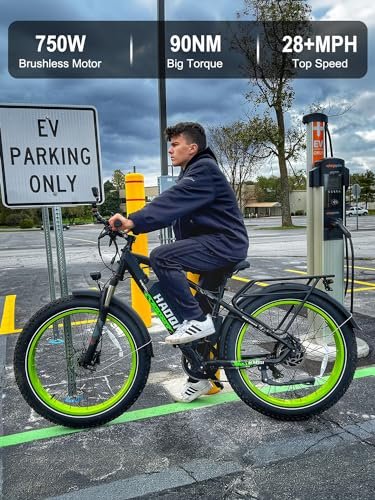 HAOQI Electric Bike for Adults, 26″ x 4.0 Fat Tire Ebike, 750W Brushless Motor Mountain Bike with 48V 20AH Removable Battery, Electric Bicycle with 7 Speed to 28MPH…